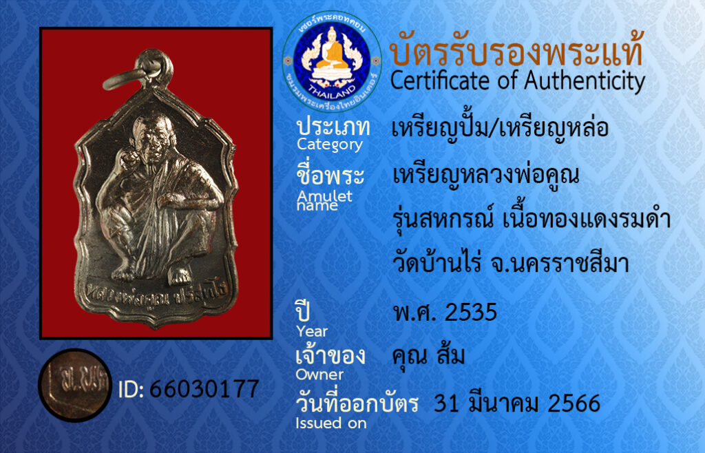 Amulet name :rian luang por koon run sa ha kron neua tong dang rom dam wat ban rai na kon rat sa see ma