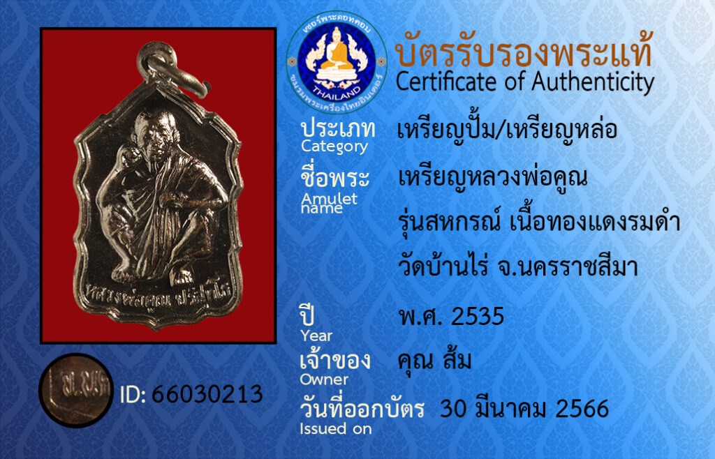 Amulet name :rian luang por koon run sa ha kron neua tong dang rom dam wat ban rai na kon rat sa see ma