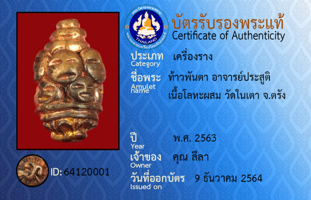 ชื่อพระ : ท้าวพันตา อาจารย์ประสูติ เนื้อโลหะผสม วัดในเตา จ.ตรัง