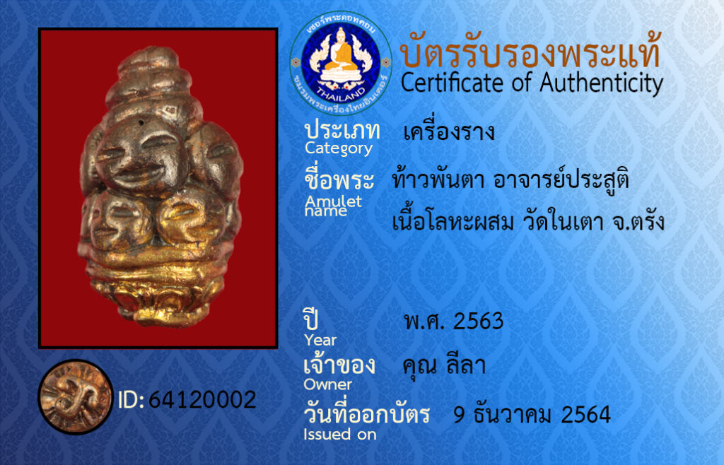 ชื่อพระ : ท้าวพันตา อาจารย์ประสูติ เนื้อโลหะผสม วัดในเตา จ.ตรัง