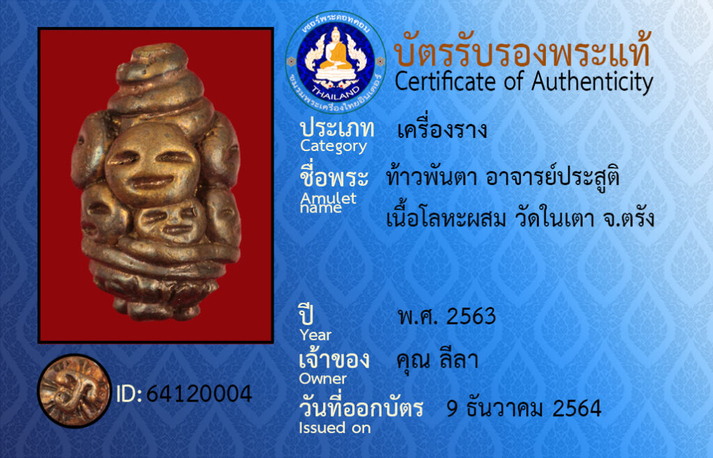ชื่อพระ : ท้าวพันตา อาจารย์ประสูติ เนื้อโลหะผสม วัดในเตา จ.ตรัง