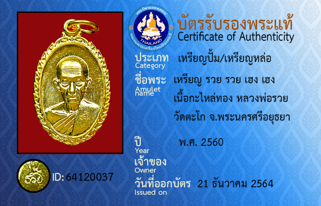 ชื่อพระ : เหรียญ รวย รวย เฮง เฮง เนื้อกะไหล่ทอง หลวงพ่อรวย วัดตะโก จ.พระนครศรีอยุธยา