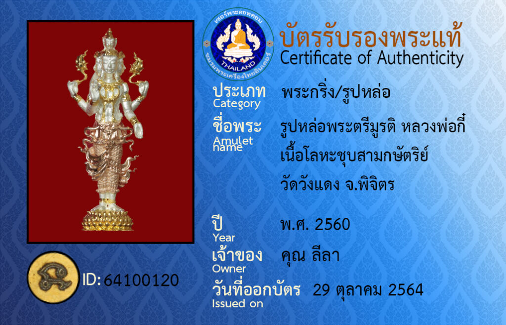 ชื่อพระ : รูปหล่อพระตรีมูรติ หลวงพ่อกี๋ เนื้อโลหะชุบสามกษัตริย์ วัดวังแดง จ.พิจิตร
