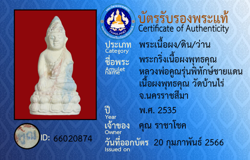 Amulet name :pra kring neua pong put ta kun luang por koon run pi tak chai daen neua pong put kun wat baan rai na kon raat see ma
