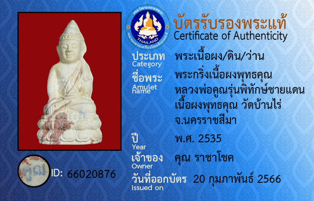Amulet name :pra kring neua pong put ta kun luang por koon run pi tak chai daen neua pong put kun wat baan rai na kon raat see ma