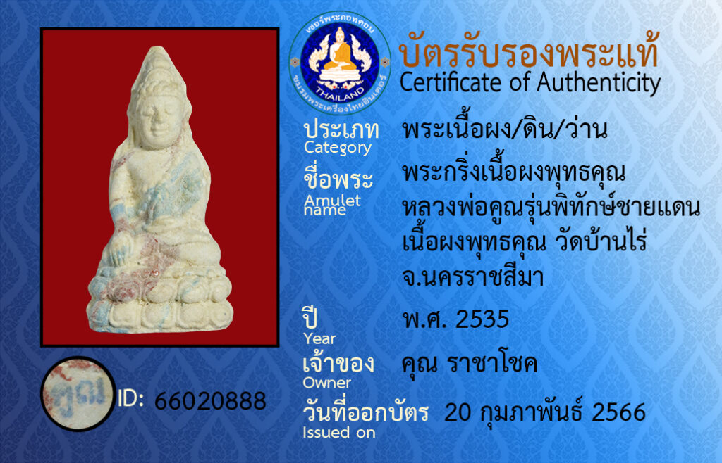 Amulet name :pra kring neua pong put ta kun luang por koon run pi tak chai daen neua pong put kun wat baan rai na kon raat see ma