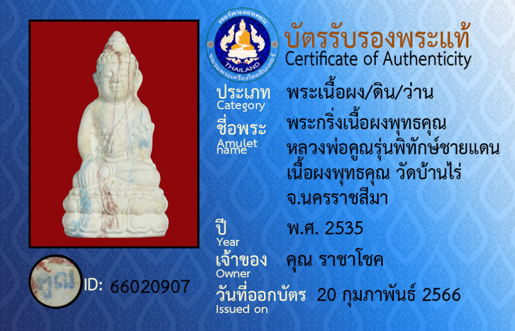 Amulet name :pra kring neua pong put ta kun luang por koon run pi tak chai daen neua pong put kun wat baan rai na kon raat see ma