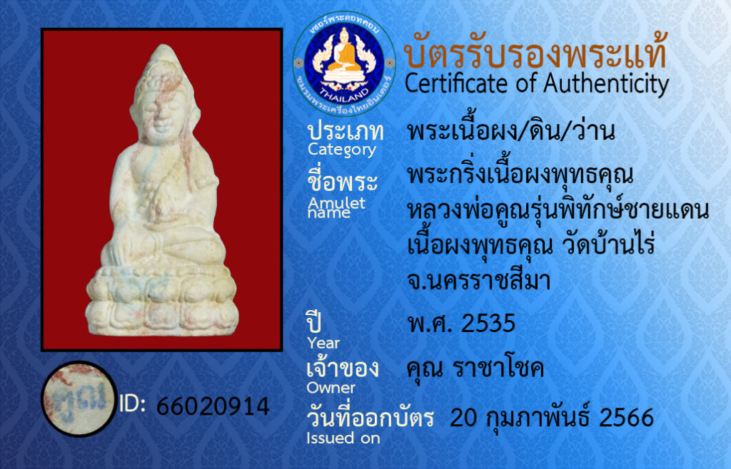 Amulet name :pra kring neua pong put ta kun luang por koon run pi tak chai daen neua pong put kun wat baan rai na kon raat see ma