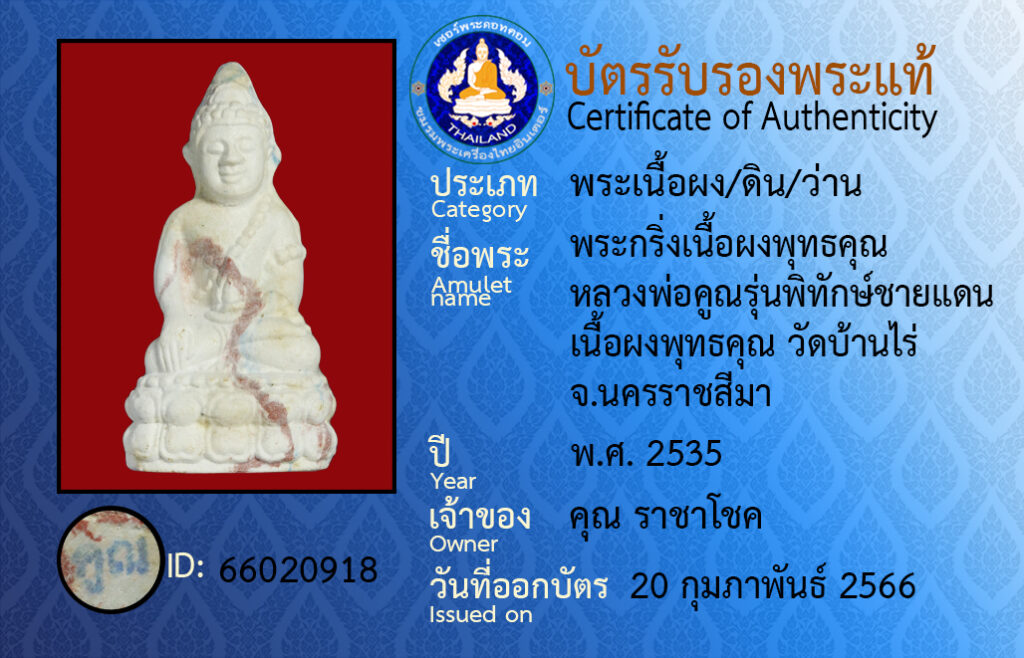 Amulet name :pra kring neua pong put ta kun luang por koon run pi tak chai daen neua pong put kun wat baan rai na kon raat see ma