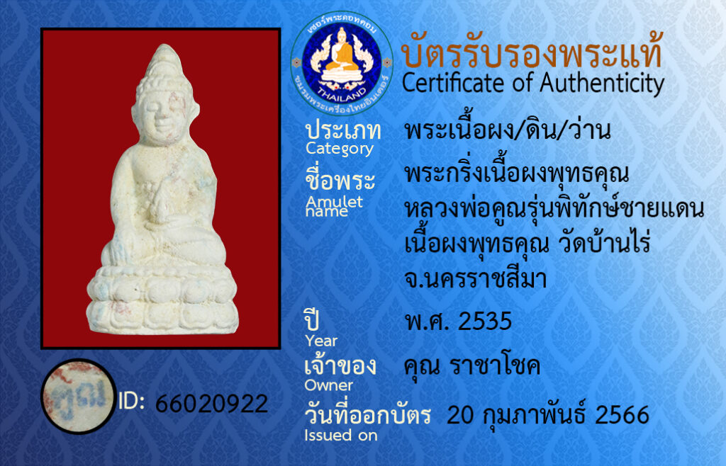 Amulet name :pra kring neua pong put ta kun luang por koon run pi tak chai daen neua pong put kun wat baan rai na kon raat see ma