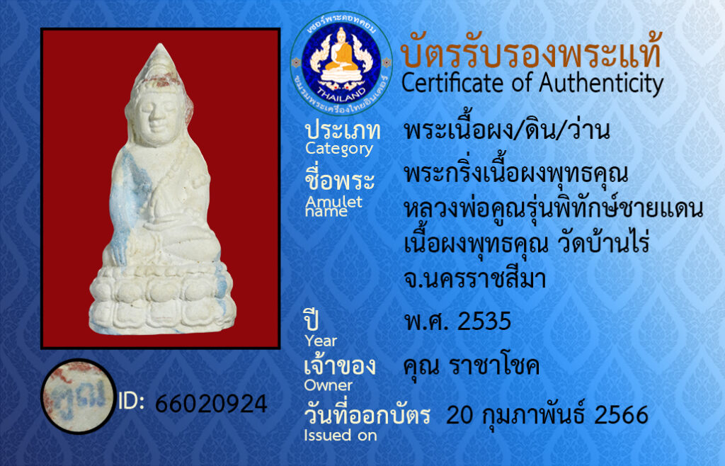 Amulet name :pra kring neua pong put ta kun luang por koon run pi tak chai daen neua pong put kun wat baan rai na kon raat see ma