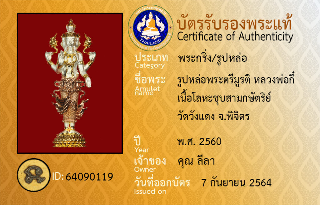 ชื่อพระ : รูปหล่อพระตรีมูรติ หลวงพ่อกี๋ เนื้อโลหะชุบสามกษัตริย์ วัดวังแดง จ.พิจิตร