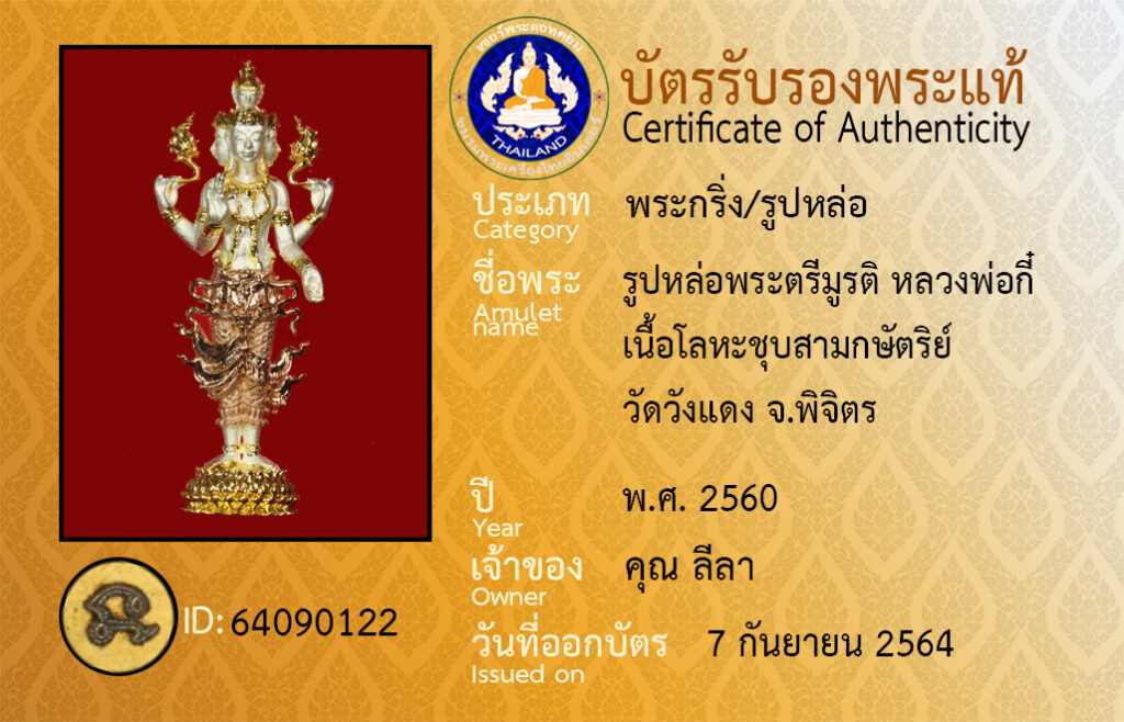 Amulet name : pra dtree-moo-ra-dti luang por gee wat wang-daeng