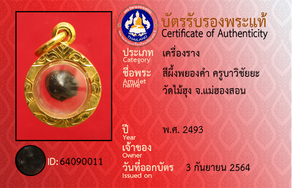 ชื่อพระ : สีผึ้งพยองคำ ครูบาวิชัยยะ วัดไม้ฮุง จ.แม่ฮองสอน