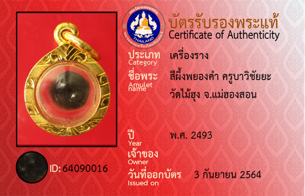 ชื่อพระ : สีผึ้งพยองคำ ครูบาวิชัยยะ วัดไม้ฮุง จ.แม่ฮองสอน