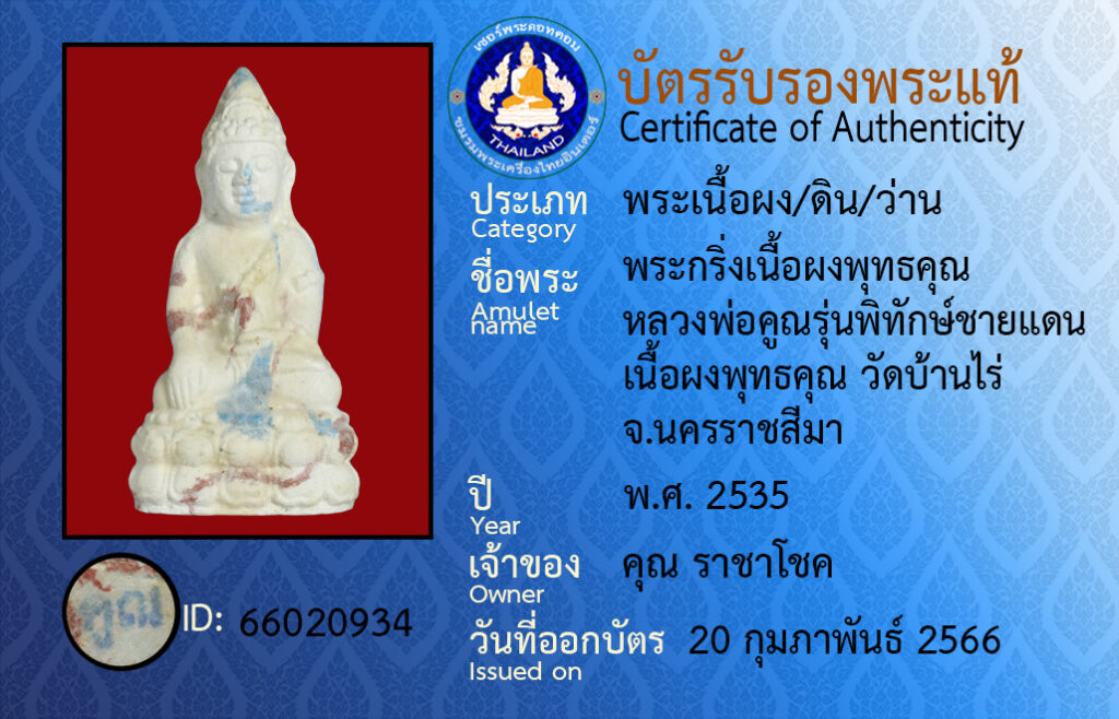 Amulet name :pra kring neua pong put ta kun luang por koon run pi tak chai daen neua pong put kun wat baan rai na kon raat see ma