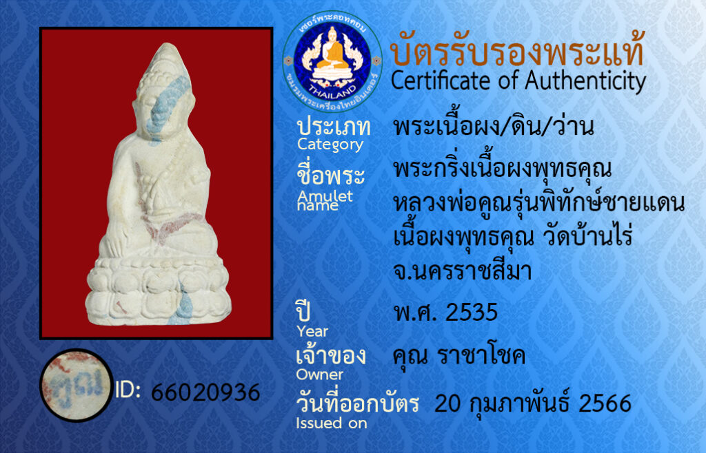 Amulet name :pra kring neua pong put ta kun luang por koon run pi tak chai daen neua pong put kun wat baan rai na kon raat see ma