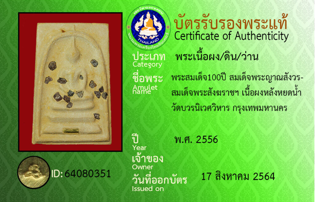 ชื่อพระ : พระสมเด็จ100ปี สมเด็จพระญาณสังวร สมเด็จพระสังฆราชฯ เนื้อผงหลังหยดน้ำ วัดบวรนิเวศวิหาร กรุงเทพมหานคร