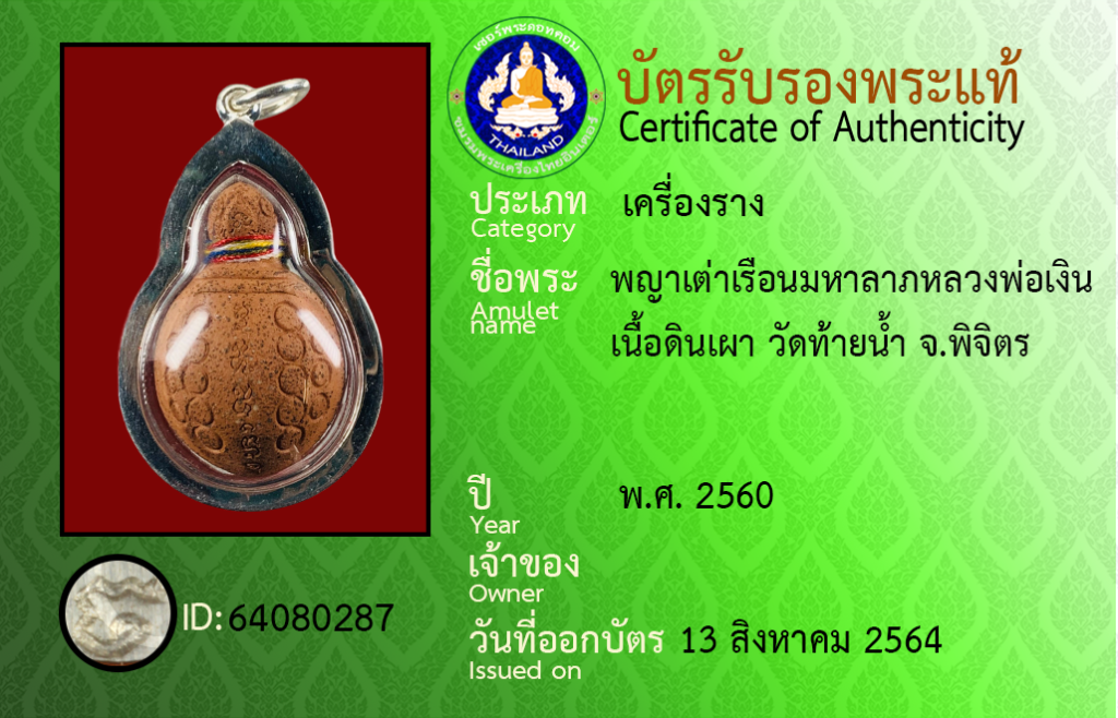 Amulet name : pra ya dtao reuan ma ha lap luang por ngern , wat tai nam