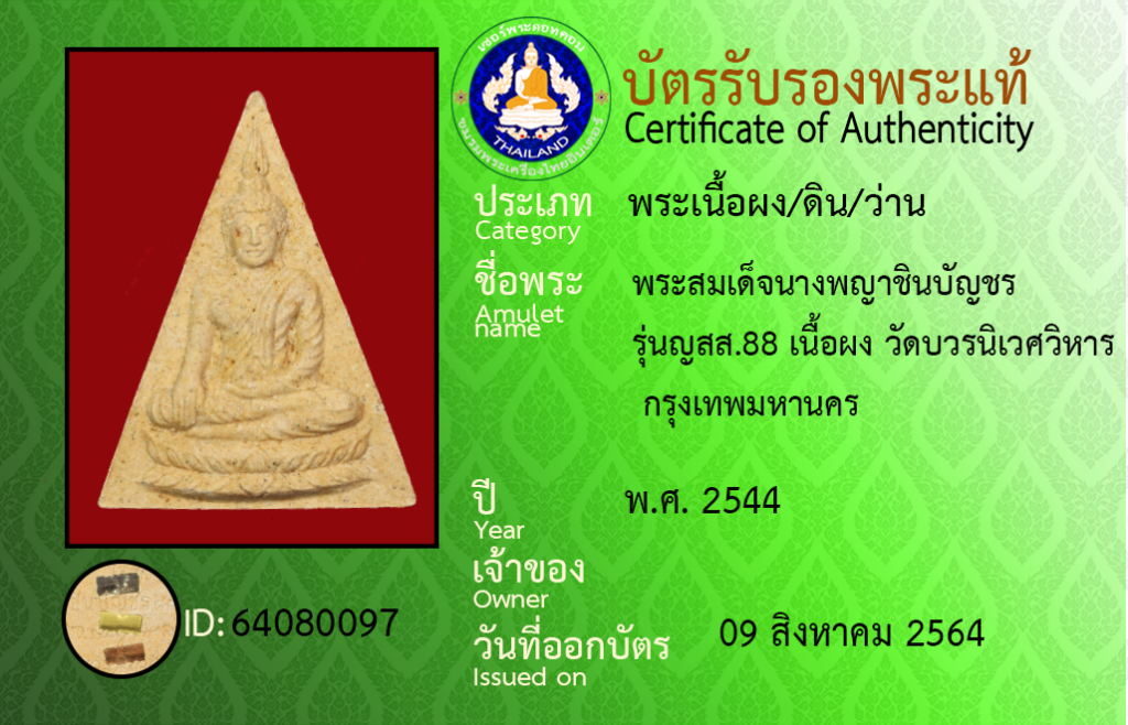 Amulet name : Phra Somdet Nangphaya Chin Banchon, Run yo Soso [88] ,Wat Bawon Niwet Wihan,Krungthepmahanakhon