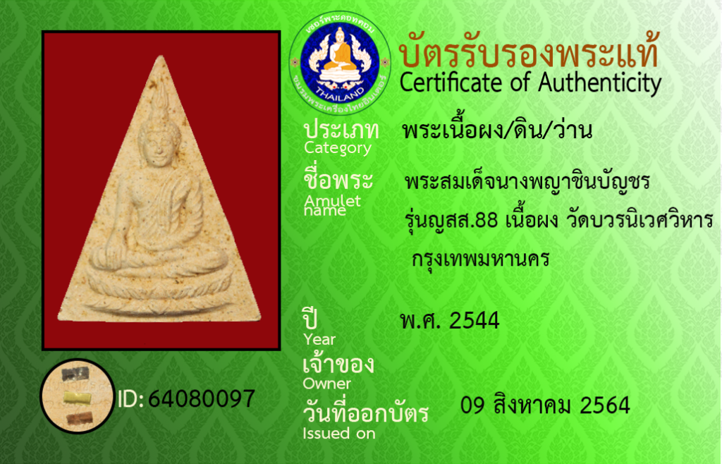 ชื่อพระ : พระสมเด็จนางพญาชินบัญชร รุ่นญสส.88 เนื้อผง วัดบวรนิเวศวิหาร กรุงเทพมหานคร