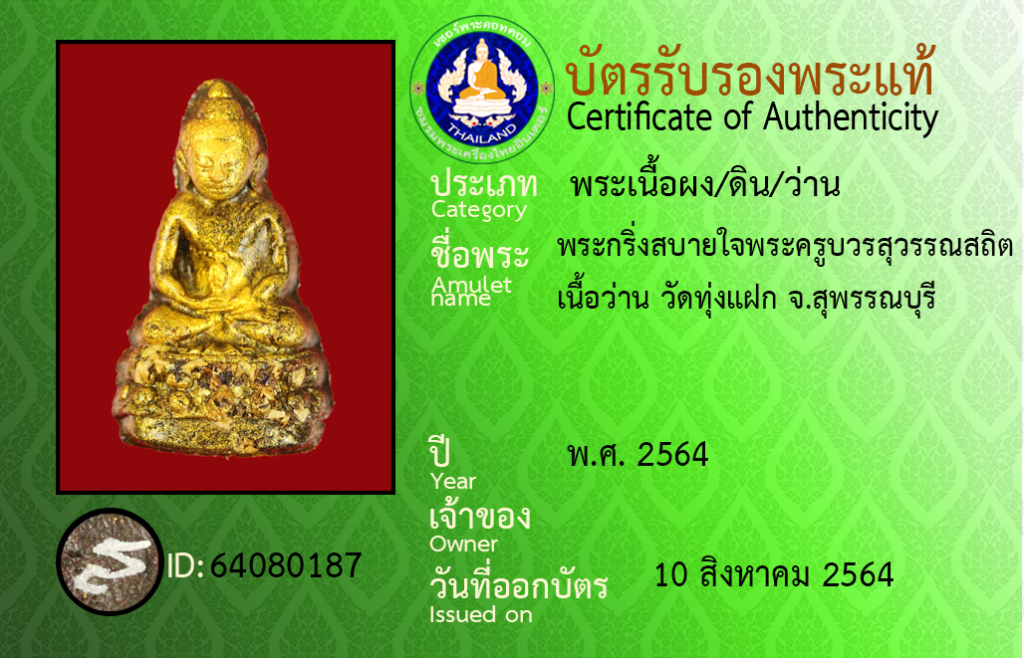 Amulet name : Phra Kring Sabaichai ,Phrakhru Bawon Suwan Sathit, wat Thung Faek,Suphan Buri