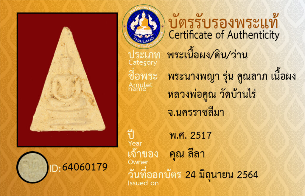 ชื่อพระ : พระนางพญา รุ่น คูณลาภ เนื้อผง หลวงพ่อคูณ วัดบ้านไร่ จ.นครราชสีมา