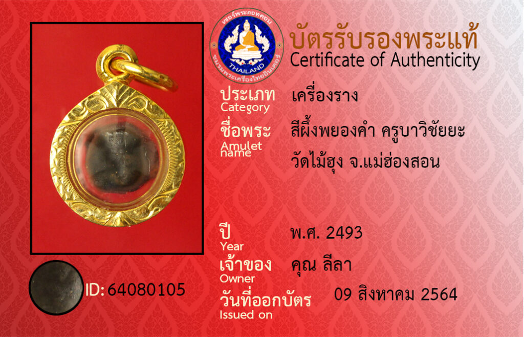 ชื่อพระ : สีผึ้งพยองคำ ครูบาวิชัยยะ วัดไม้ฮุง จ.แม่ฮองสอน