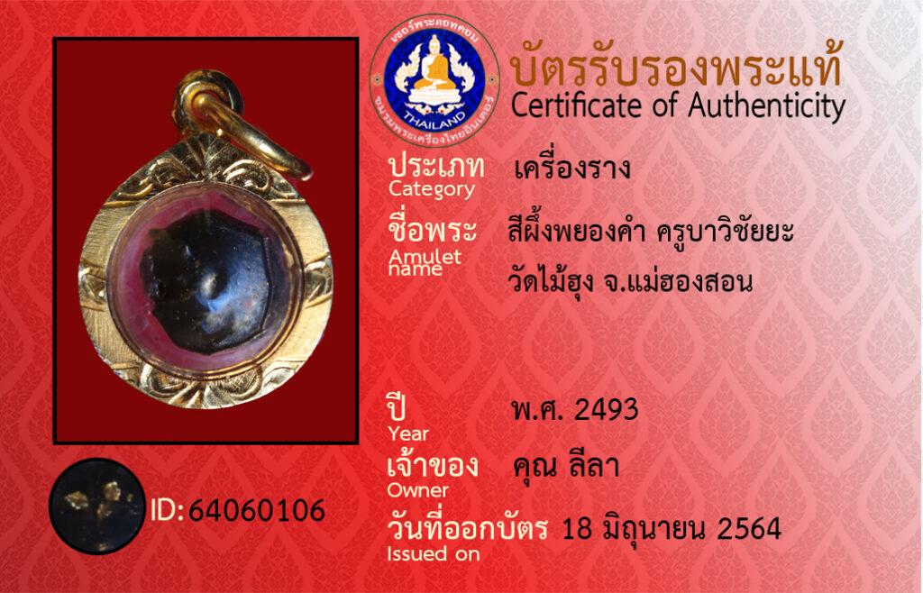 ชื่อพระ : สีผึ้งพยองคำ ครูบาวิชัยยะ วัดไม้ฮุง จ.แม่ฮองสอน
