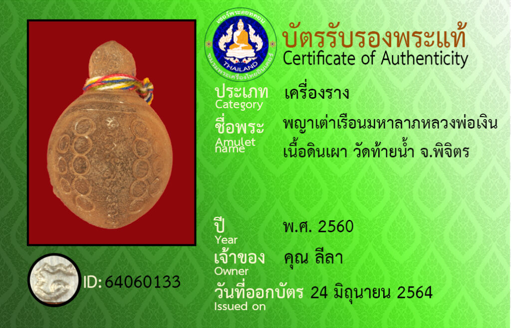Amulet name : pra ya dtao reuan ma ha lap luang por ngern , wat tai nam