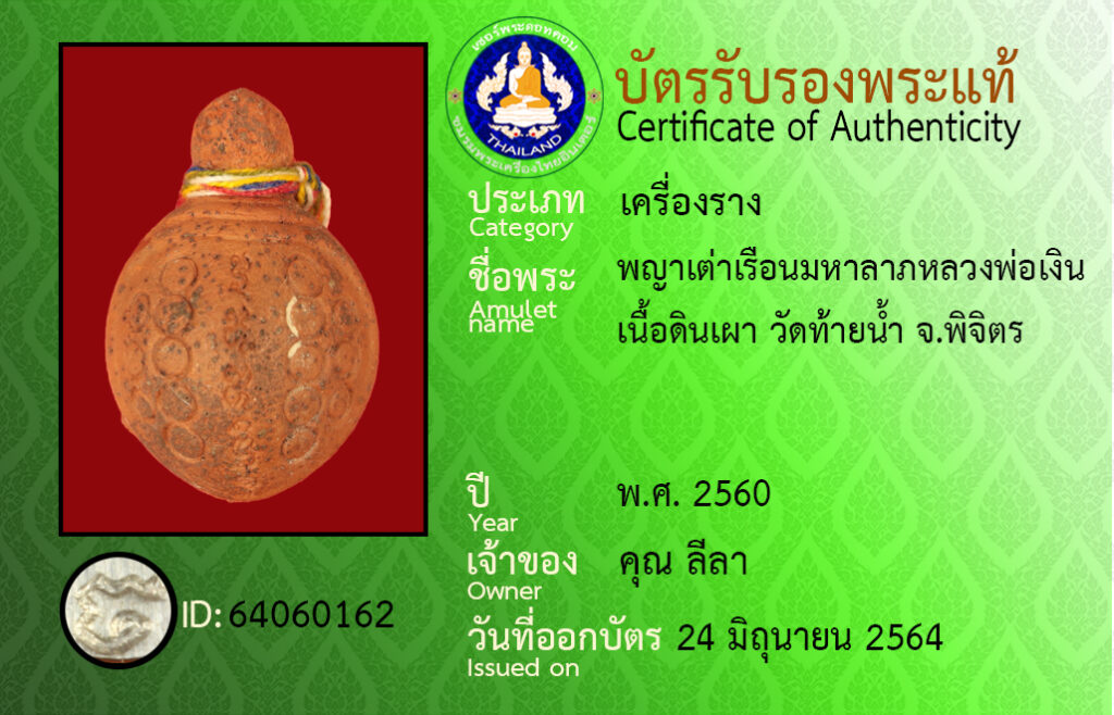 Amulet name : pra ya dtao reuan ma ha lap luang por ngern , wat tai nam