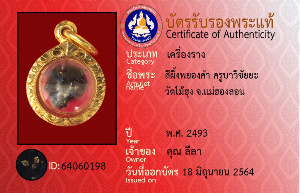 ชื่อพระ : สีผึ้งพยองคำ ครูบาวิชัยยะ วัดไม้ฮุง จ.แม่ฮองสอน