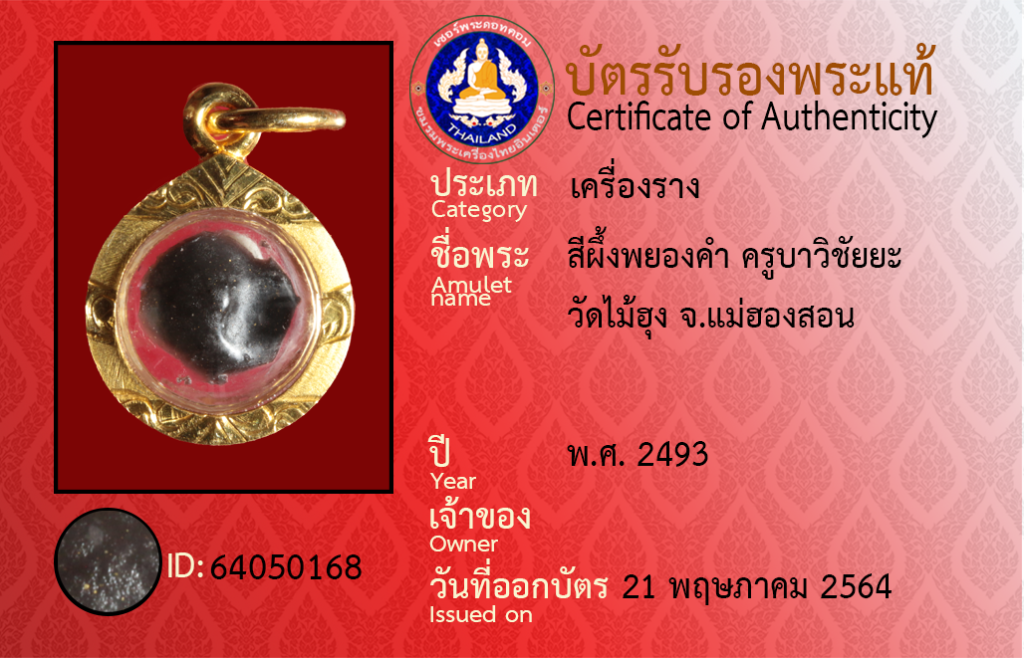 ชื่อพระ : สีผึ้งพยองคำ ครูบาวิชัยยะ วัดไม้ฮุง จ.แม่ฮองสอน