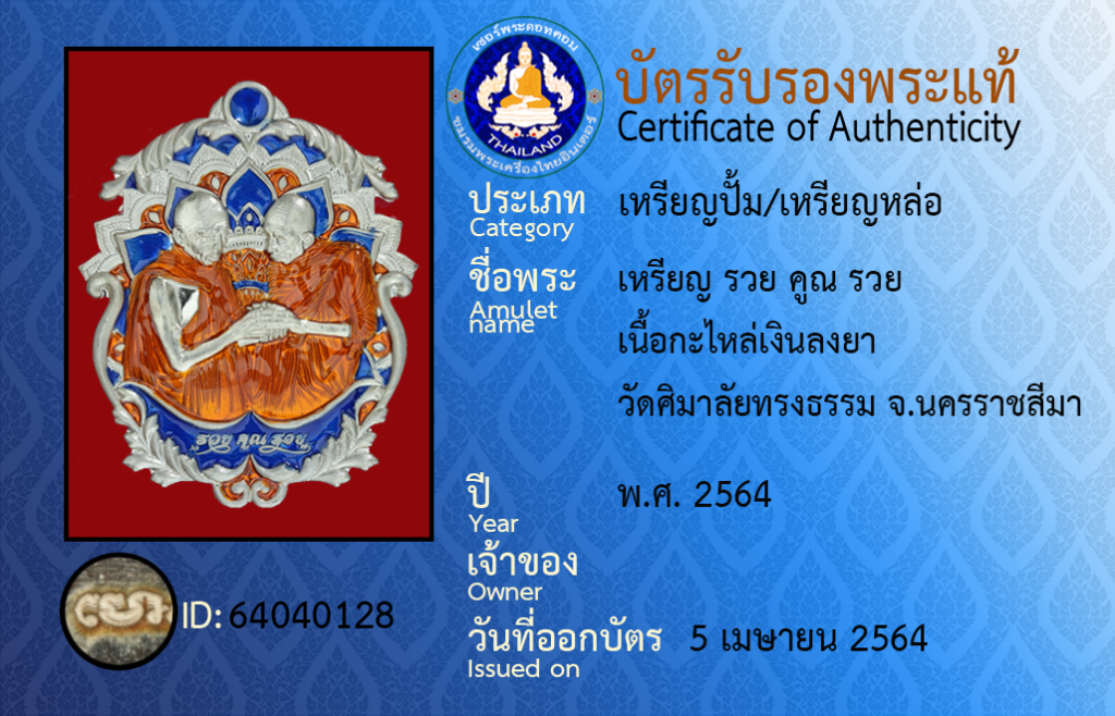 ชื่อพระ : เหรียญ รวย คูณ รวย เนื้อกะไหล่เงินลงยา วัดศิมาลัยทรงธรรม จ.นครราชสีมา