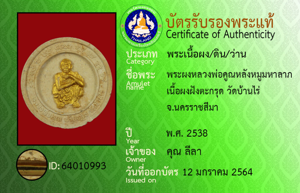 ประเภท : พระเนื้อผง/ดิน/ว่าน