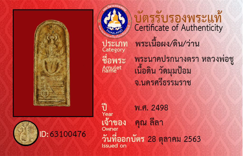 ชื่อพระ : พระนาคปรกนางตรา หลวงพ่อชู เนื้อดิน วัดมุมป้อม จ.นครศรีธรรมราช