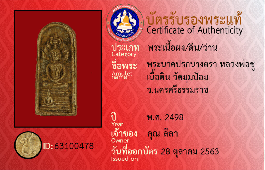 ชื่อพระ : พระนาคปรกนางตรา หลวงพ่อชู เนื้อดิน วัดมุมป้อม จ.นครศรีธรรมราช