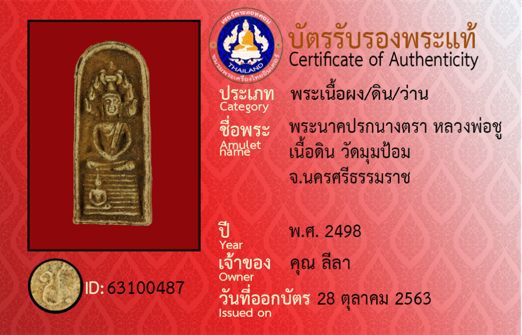 ชื่อพระ : พระนาคปรกนางตรา หลวงพ่อชู เนื้อดิน วัดมุมป้อม จ.นครศรีธรรมราช