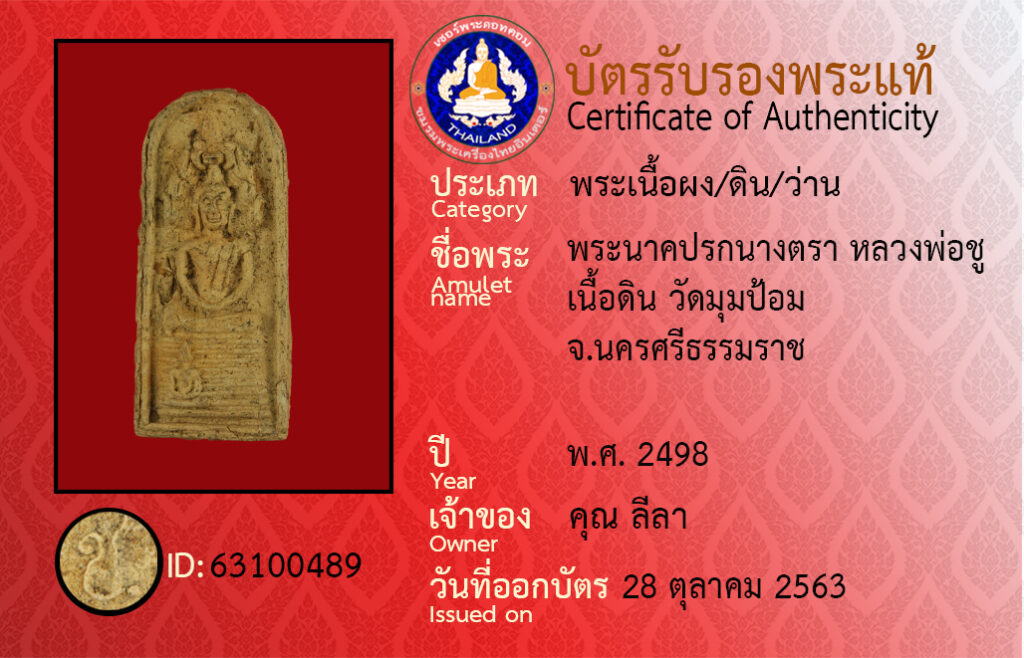 ชื่อพระ : พระนาคปรกนางตรา หลวงพ่อชู เนื้อดิน วัดมุมป้อม จ.นครศรีธรรมราช