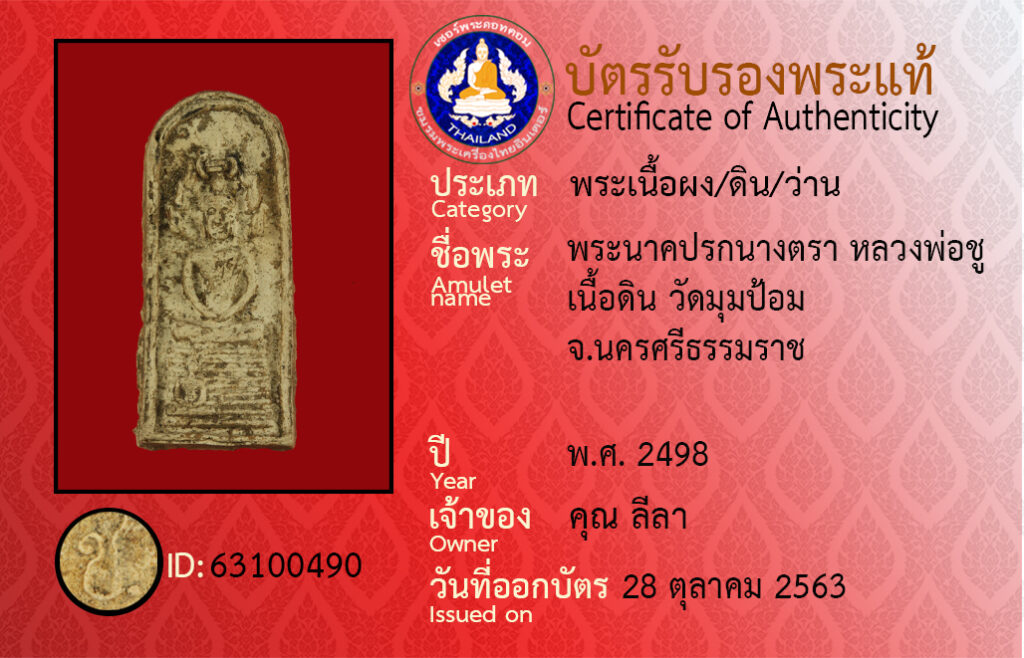 ชื่อพระ : พระนาคปรกนางตรา หลวงพ่อชู เนื้อดิน วัดมุมป้อม จ.นครศรีธรรมราช
