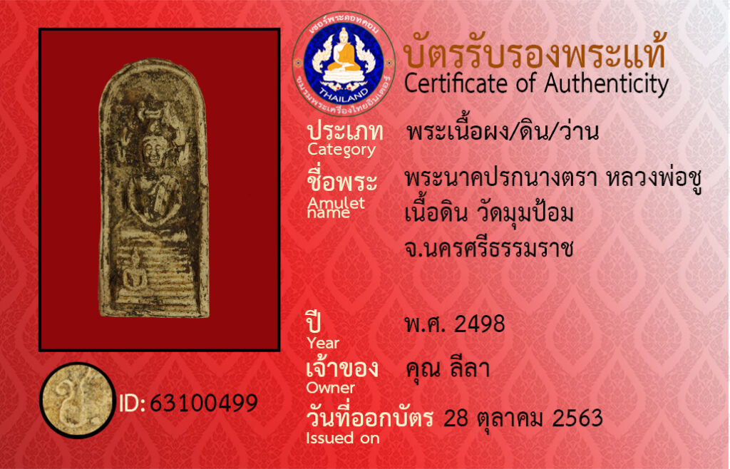 ชื่อพระ : พระนาคปรกนางตรา หลวงพ่อชู เนื้อดิน วัดมุมป้อม จ.นครศรีธรรมราช