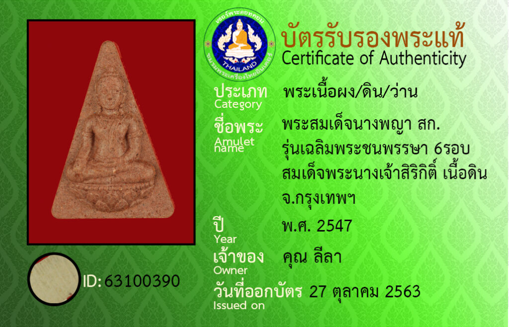 佛牌名称 : 诗丽吉皇太后七十二岁 南帕亚 圣粉材质 泰国曼谷 佛历2547年