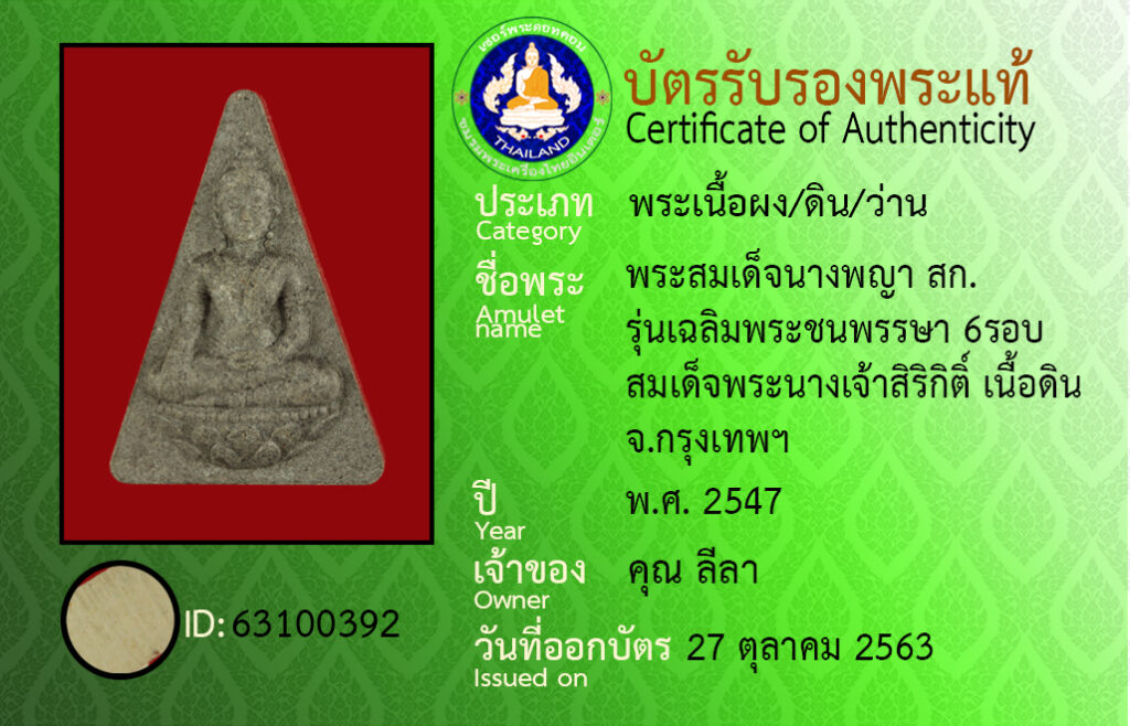 佛牌名称 : 诗丽吉皇太后七十二岁 南帕亚 圣粉材质 泰国曼谷 佛历2547年