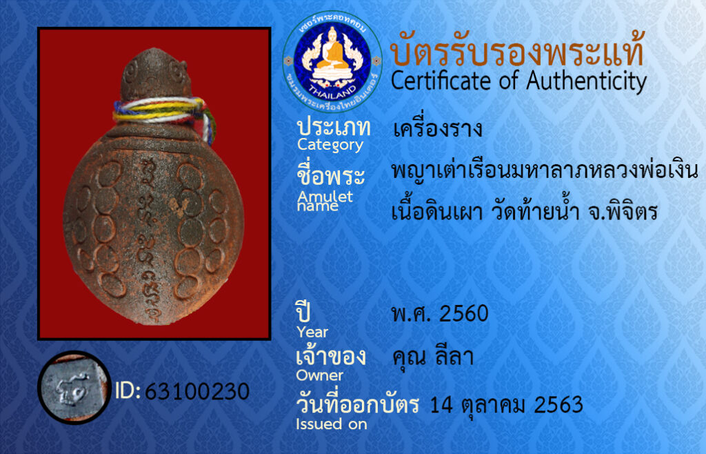 ชื่อพระ : พญาเต่าเรือนมหาลาภหลวงพ่อเงินเนื้อดินเผา วัดท้ายน้ำ จ.พิจิตร