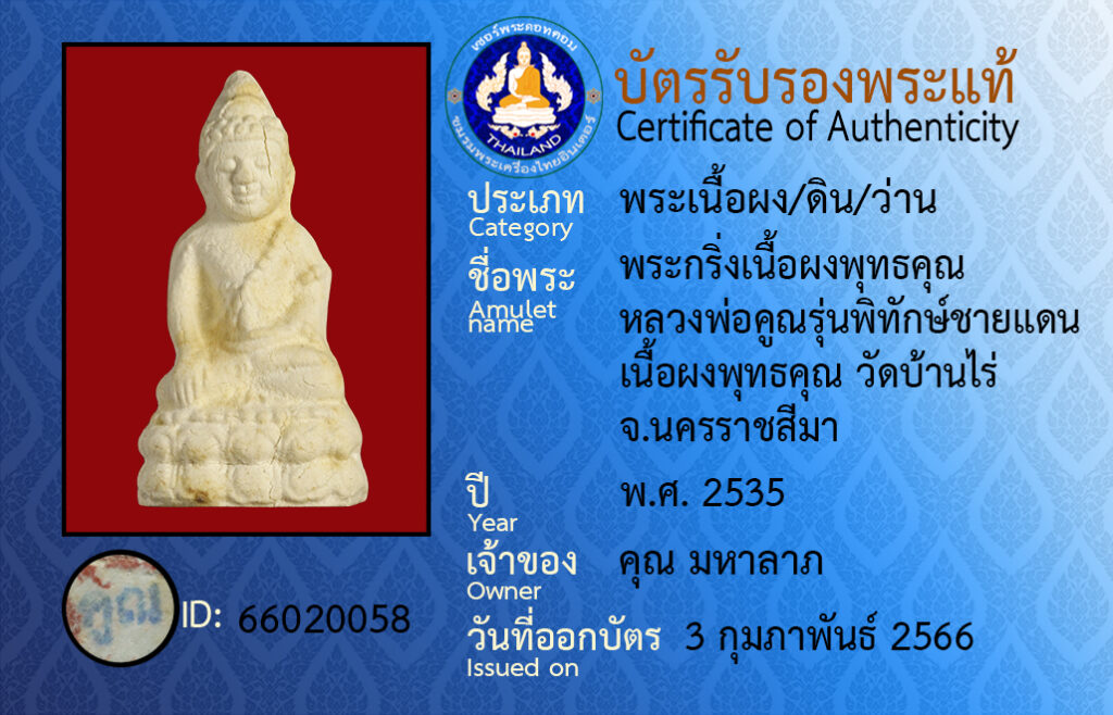 Amulet name : pra kring luangpor koon wat ban rai