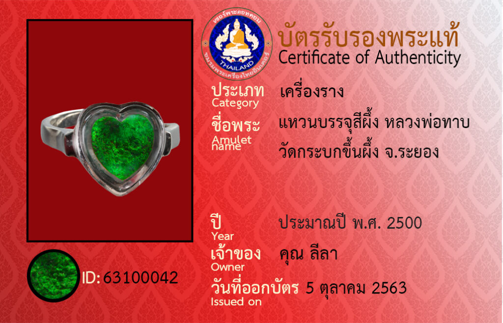 ชื่อพระ : แหวนบรรจุสีผึ้ง หลวงพ่อทาบ วัดกระบกขึ้นผึ้ง จ.ระยอง