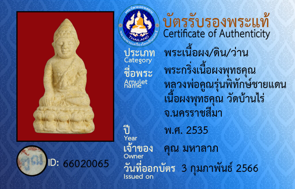 ชื่อพระ : พระกริ่งเนื้อผงพุทธคุณ หลวงพ่อคูณ รุ่นพิทักษ์ชายเเดน เนื้อผงพุทธคุณ วัดบ้านไร่ จ.นครราชสีมา