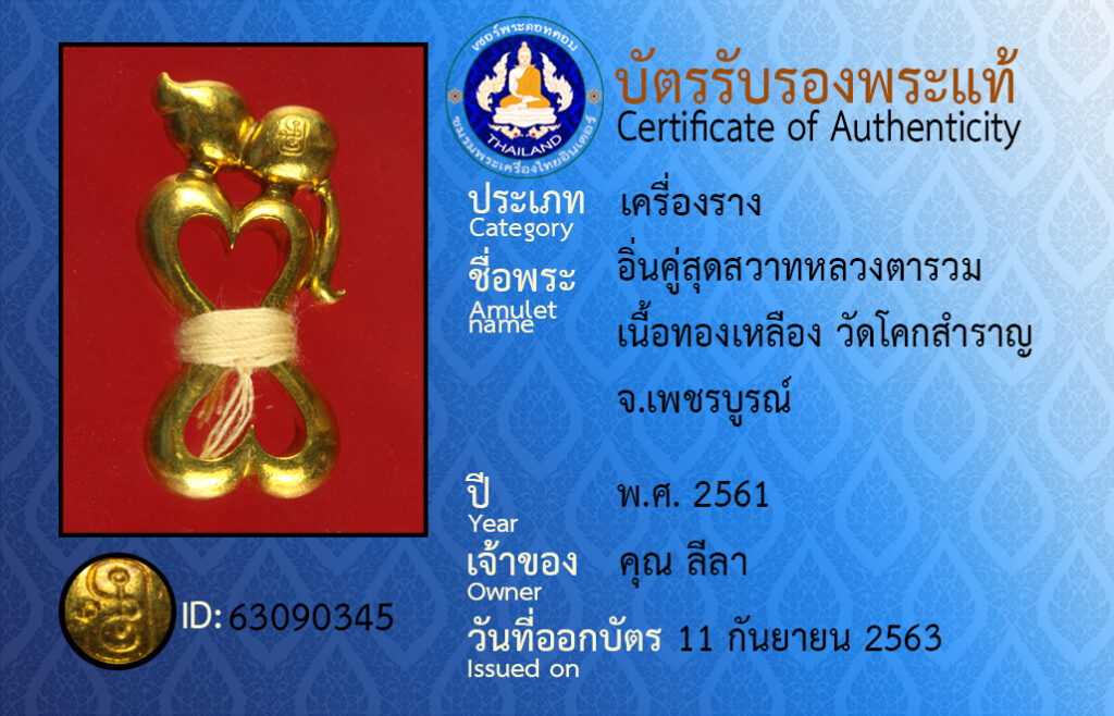 ชื่อพระ : อิ่นคู่สุดสวาทหลวงตารวม เนื้อทองเหลือง วัดโคกสำราญ จ.เพชรบูรณ์