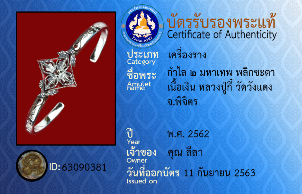 ชื่อพระ : กำไล ๒ มหาเทพ พลิกชะตา เนื้อเงิน หลวงปู่กี๋ วัดวังแดง จ.พิจิตร