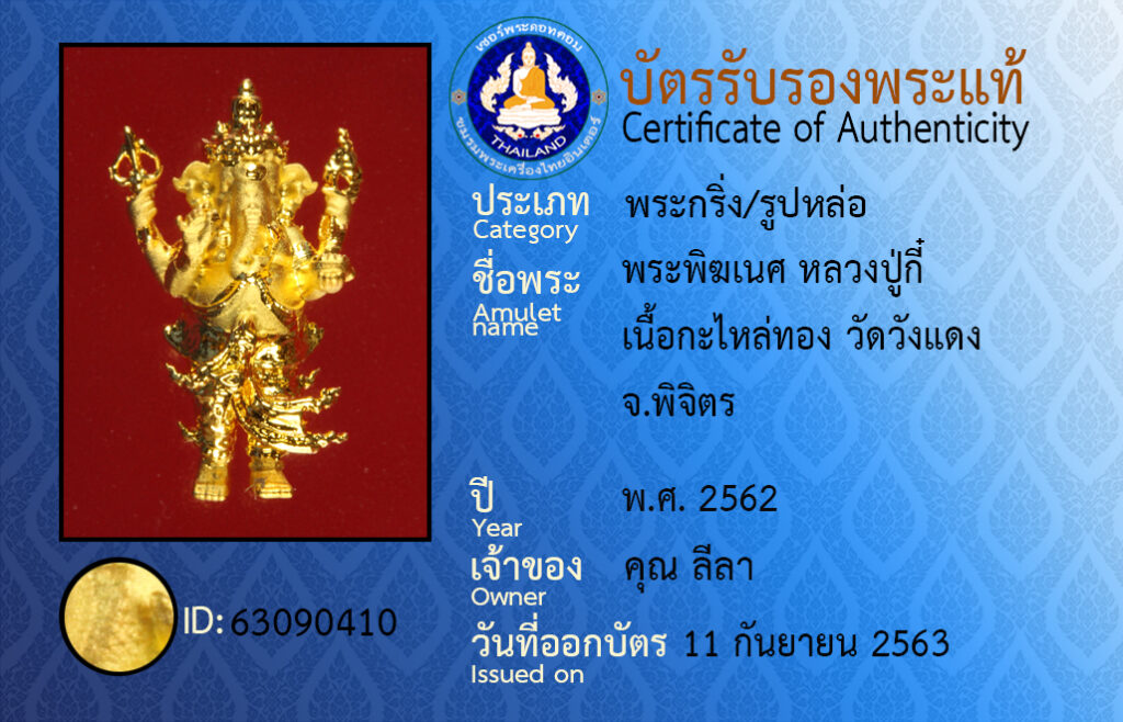 ชื่อพระ : พระพิฆเนศ หลวงปู่กี๋ เนื้อกะไหล่ทอง วัดวังแดง จ.พิจิตร